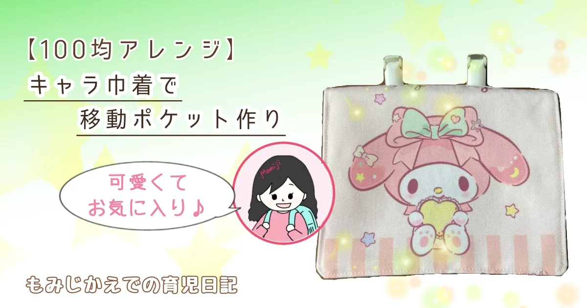 100均のキャラ巾着を使って、娘達の好きなキャラクターの移動ポケットを手作りした方法を写真付きで紹介。フタつき・3ポケットで、小学生も使いやすいサイズです。